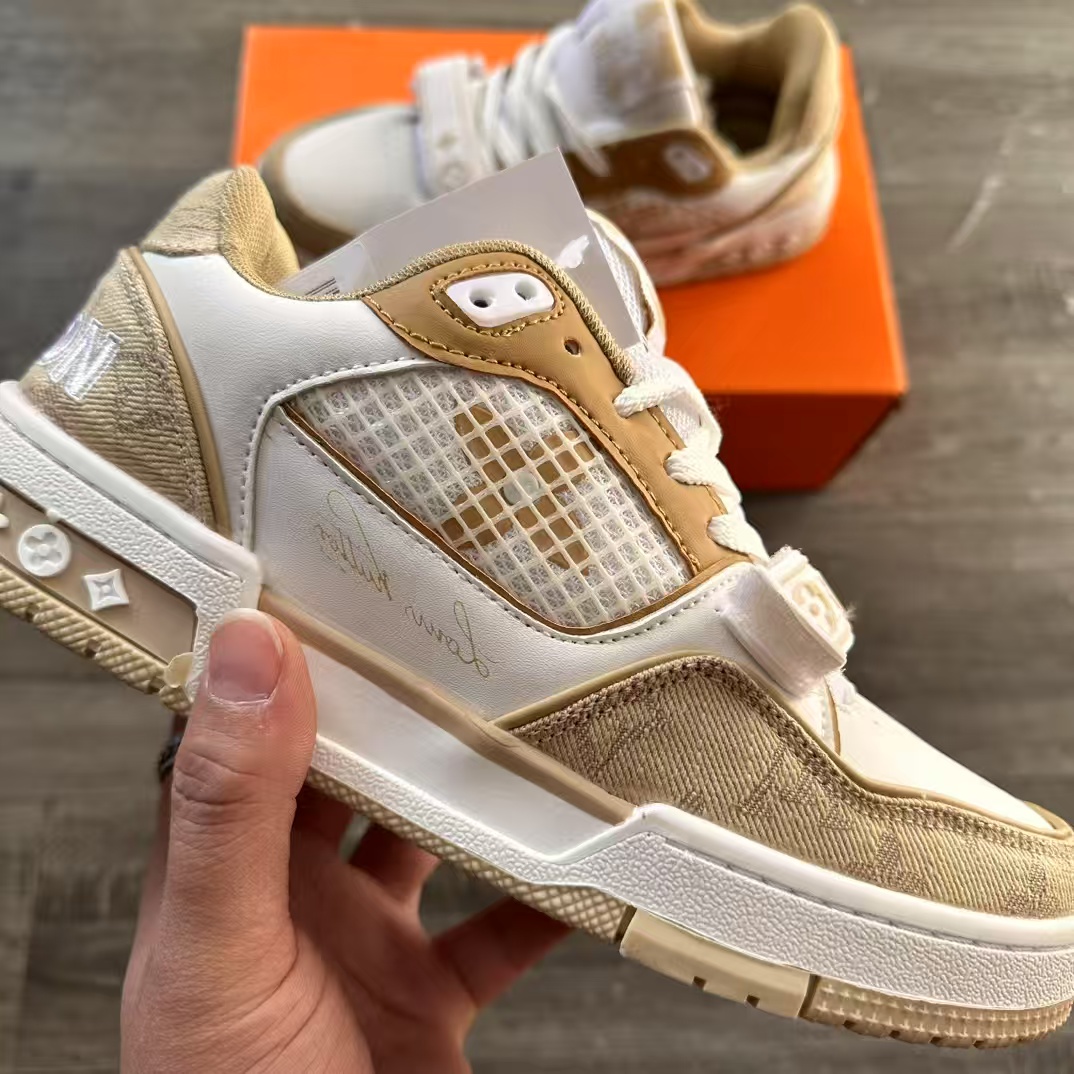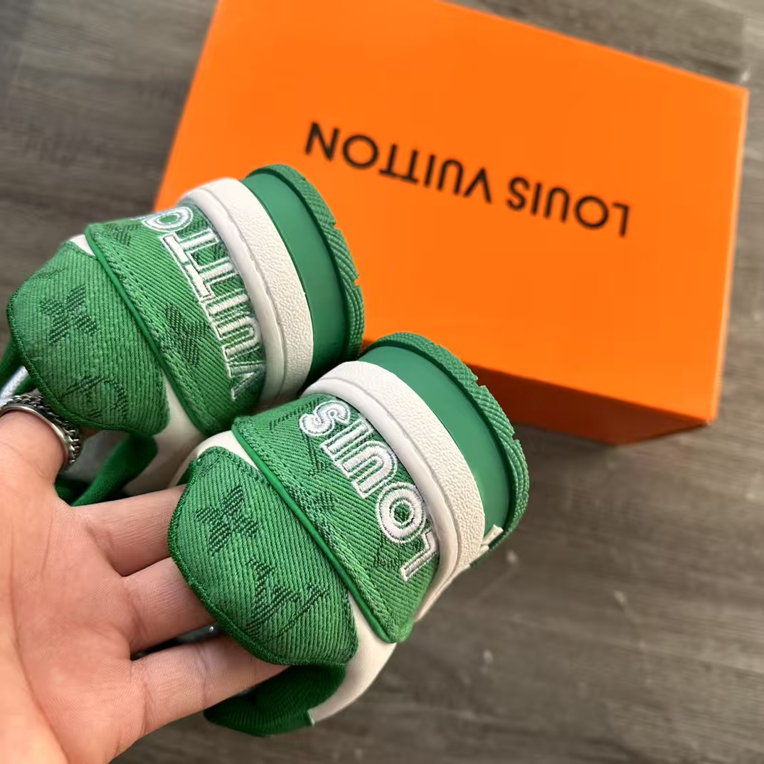モノグラム・デニムやテクニカルメッシュなどの素材をミックスしてアイコニックなデザインを再解釈した「LV トレイナー・ライン スニーカー」。アッパーの側面に施された手描き風の「Louis Vuitton」や背面に刺繡であしらわれた「Vuitton」シグネチャーなど、豊富なディテールが特徴のアイテムです。ラバーアウトソールと調節可能なベルクロストラップにはモノグラム・フラワーをあしらいました。