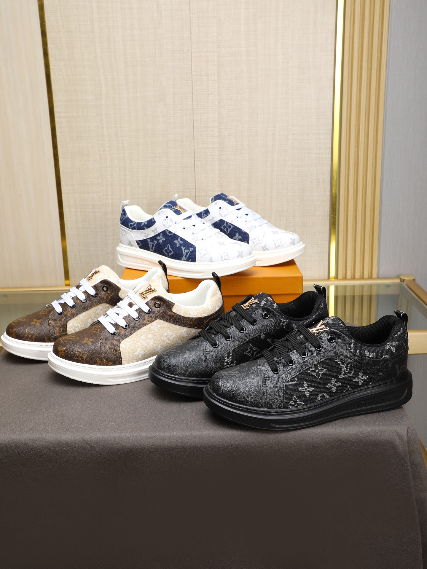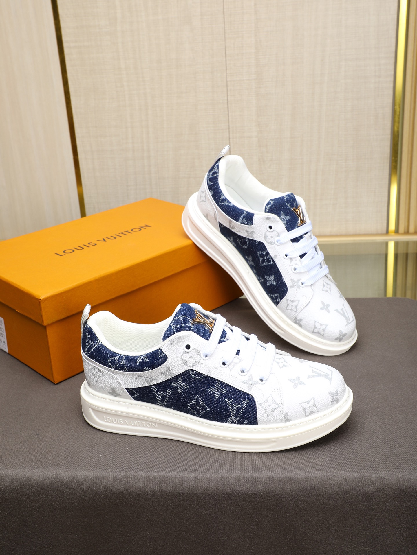 モノグラム パターンと精巧な LV モノグラムが施された滑らかなカーフスキンで作られたこの LV トレーナー スニーカーは、ヴァージル アブローがデザインし、ビンテージのバスケットボール シューズからインスピレーションを得たオリジナルのシルエットで作られています。