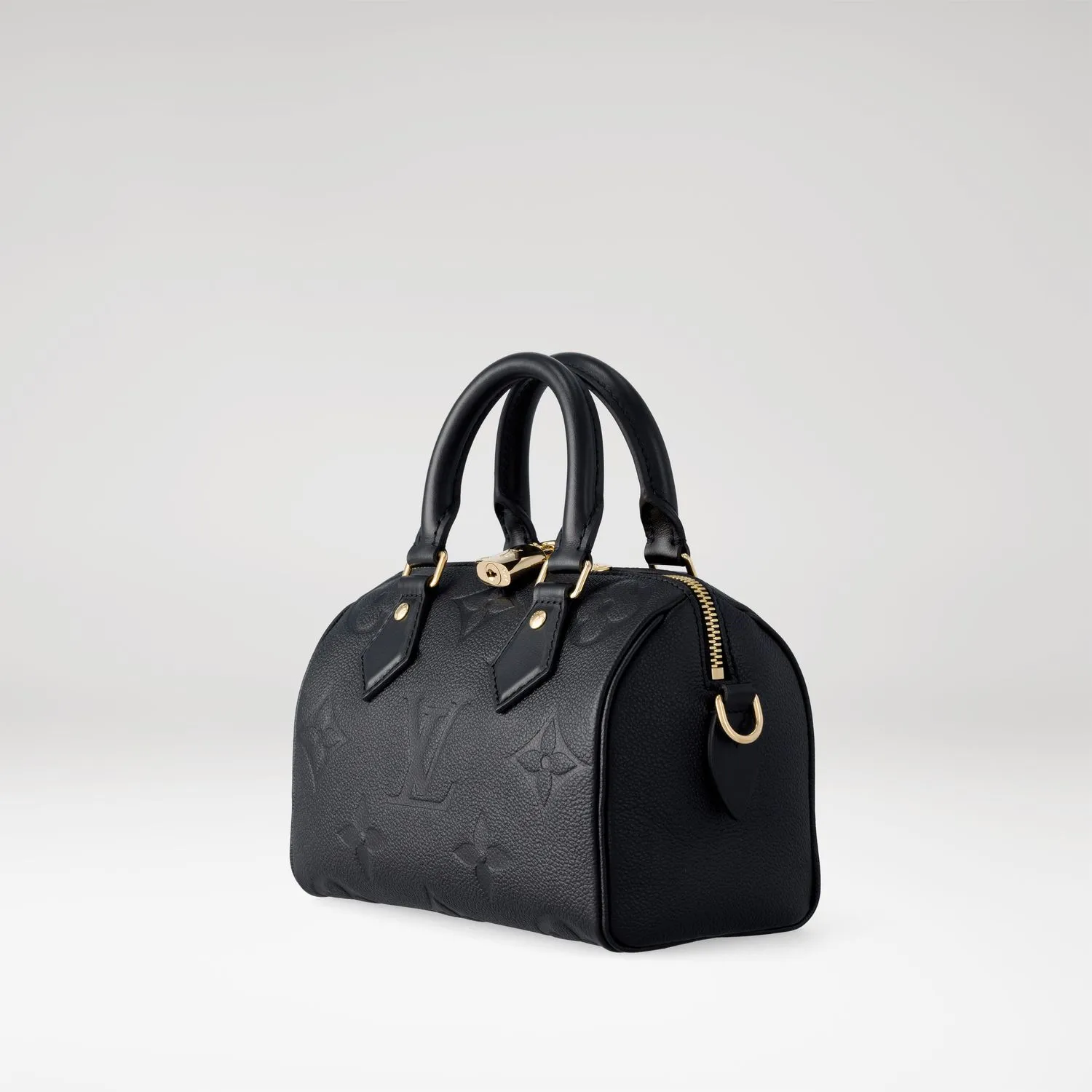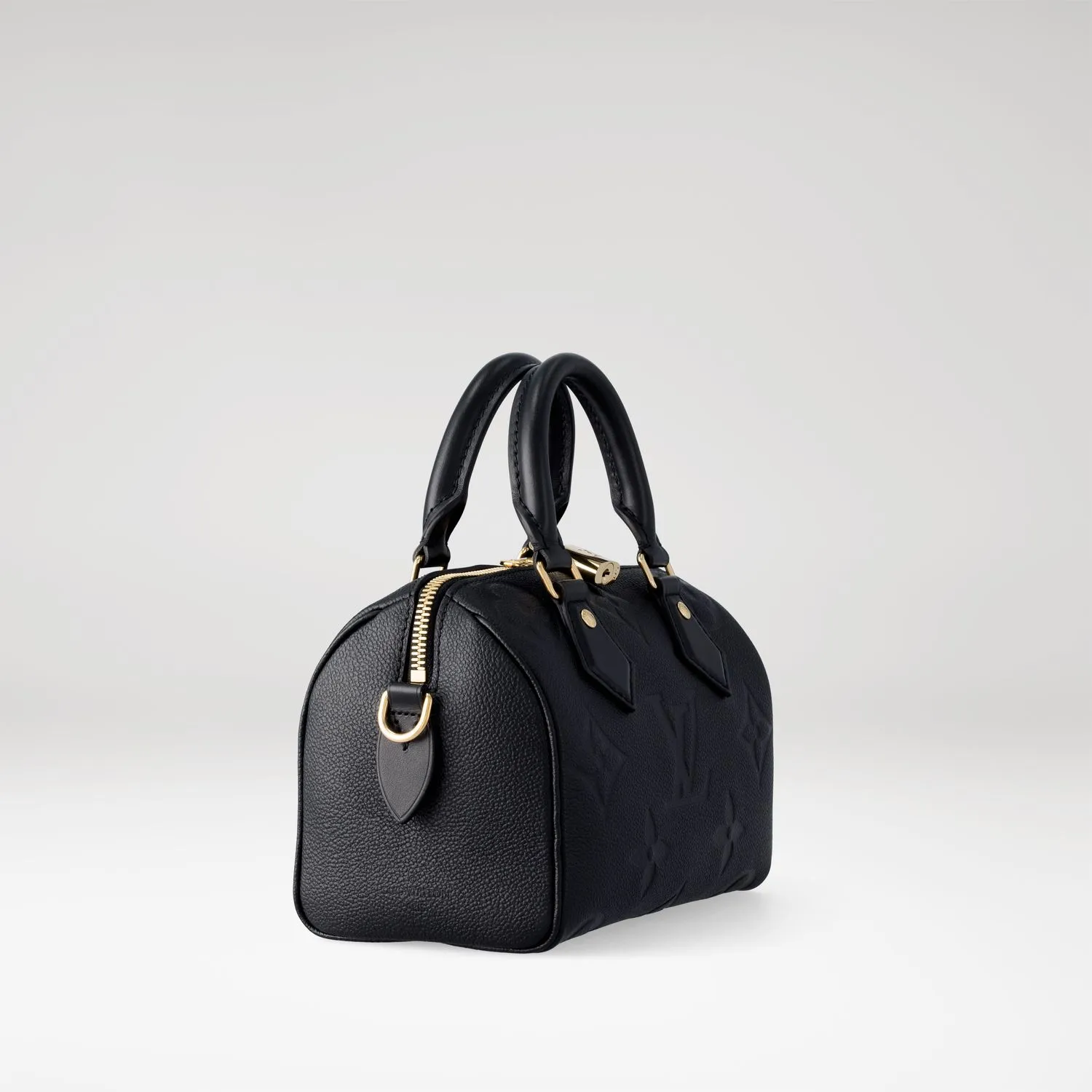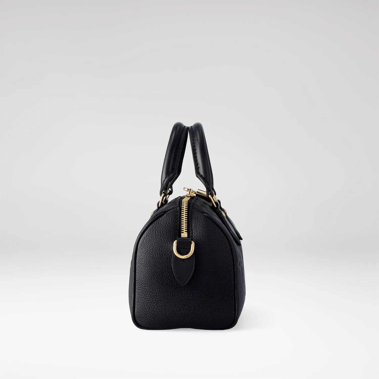 必需品を持ち運ぶのに最適なコンパクトサイズのトレンディなハンドバッグ「スピーディ・バンドリエール 20」。モノグラム・ジャイアント パターンをエンボス加工で施した、なめらかなグレインが魅力のモノグラム・アンプラント レザーで仕立てました。ゴールドカラーのメタルパーツとパドロックが特徴です。2本のトロンハンドルに加え、取外し & 調節可能な繊細なチェーンストラップを備えています。