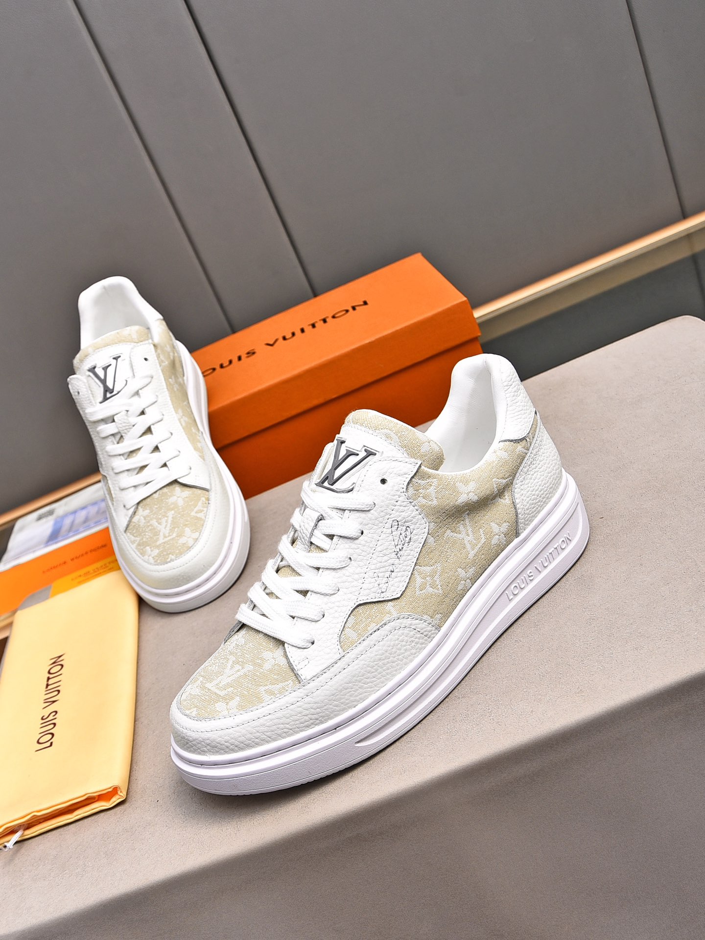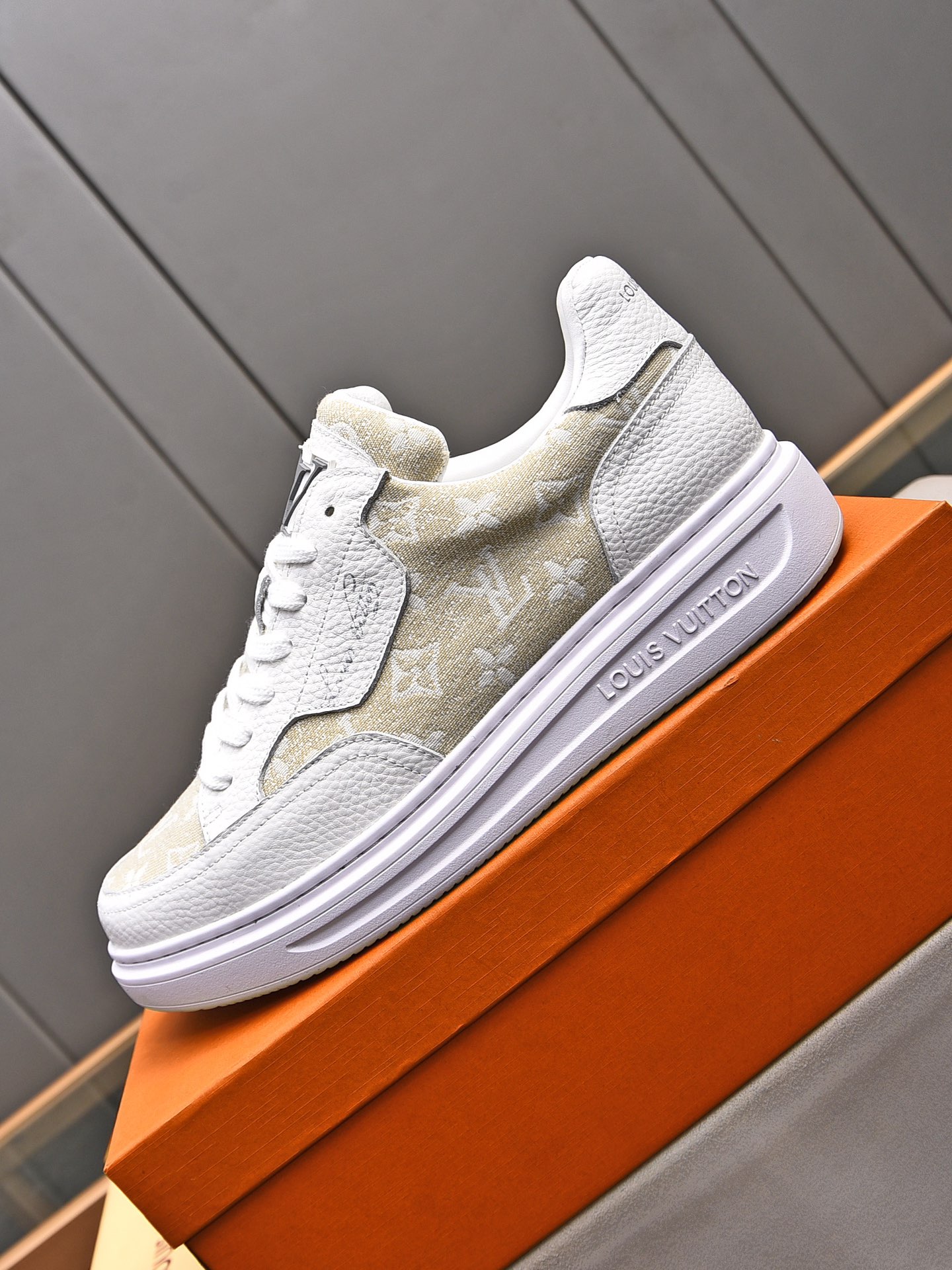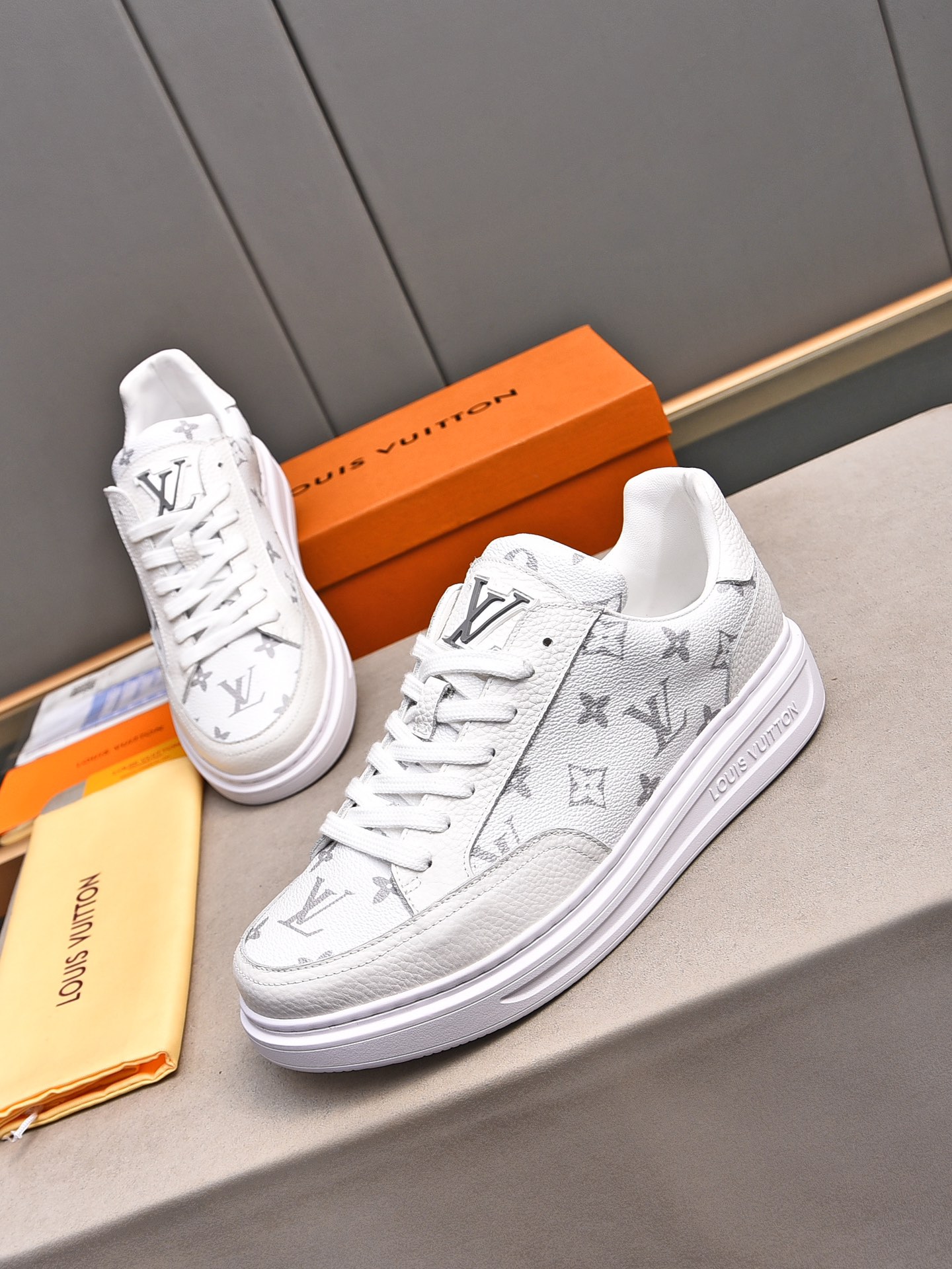 歴史あるダミエ・パターンを控えめにエンボス加工で施したしなやかなカーフレザー製の「ビバリーヒルズ・ライン スニーカー」。LVアッパー(LV第一層牛革/シープスキンライニング)➕滑り止めと耐摩耗性に優れたアウトソール。あらゆる男性の個性を際立たせ、着用するとエレガントで落ち着いた印象を与えます。洗練されたレザーのアッパーとチャンキーながらも軽量なラバーアウトソールを組み合わせた1足です。シュータンにはLV イニシャルのロゴを、バックには「Louis Vuitton」シグネチャーをあしらいました。