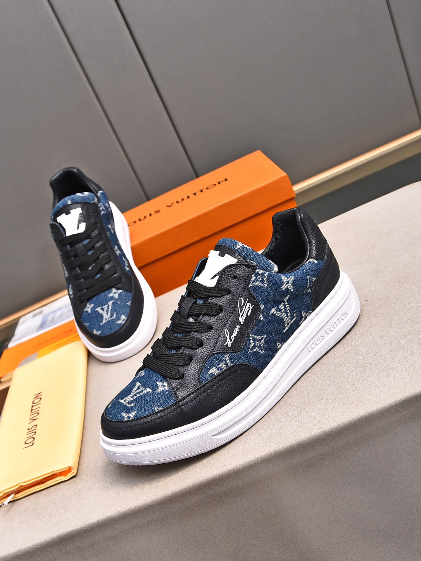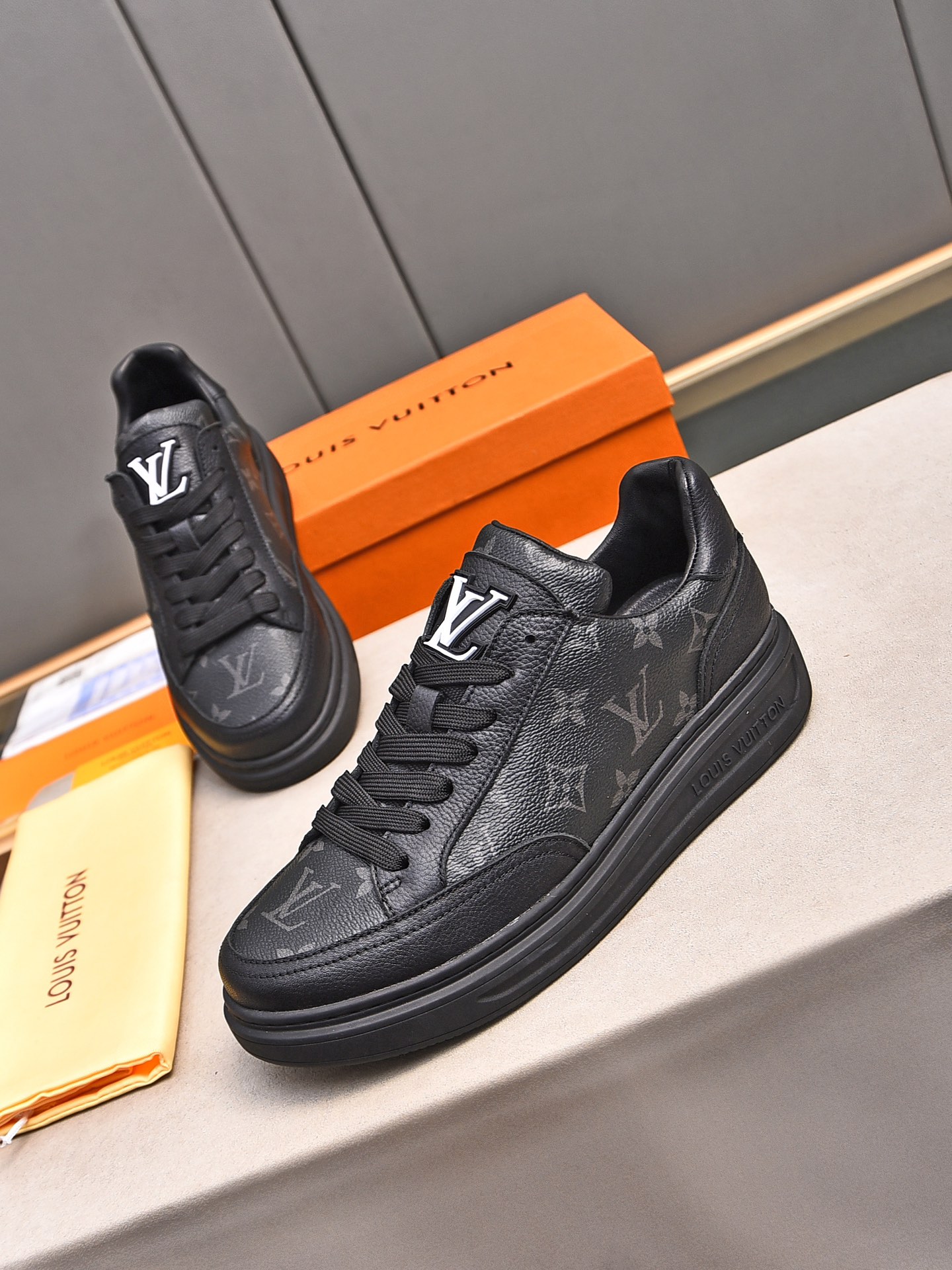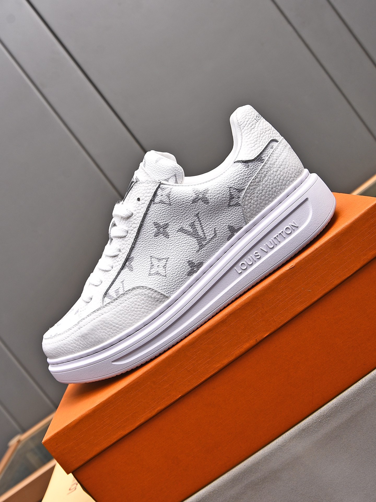 歴史あるダミエ・パターンを控えめにエンボス加工で施したしなやかなカーフレザー製の「ビバリーヒルズ・ライン スニーカー」。LVアッパー(LV第一層牛革/シープスキンライニング)➕滑り止めと耐摩耗性に優れたアウトソール。あらゆる男性の個性を際立たせ、着用するとエレガントで落ち着いた印象を与えます。洗練されたレザーのアッパーとチャンキーながらも軽量なラバーアウトソールを組み合わせた1足です。シュータンにはLV イニシャルのロゴを、バックには「Louis Vuitton」シグネチャーをあしらいました。