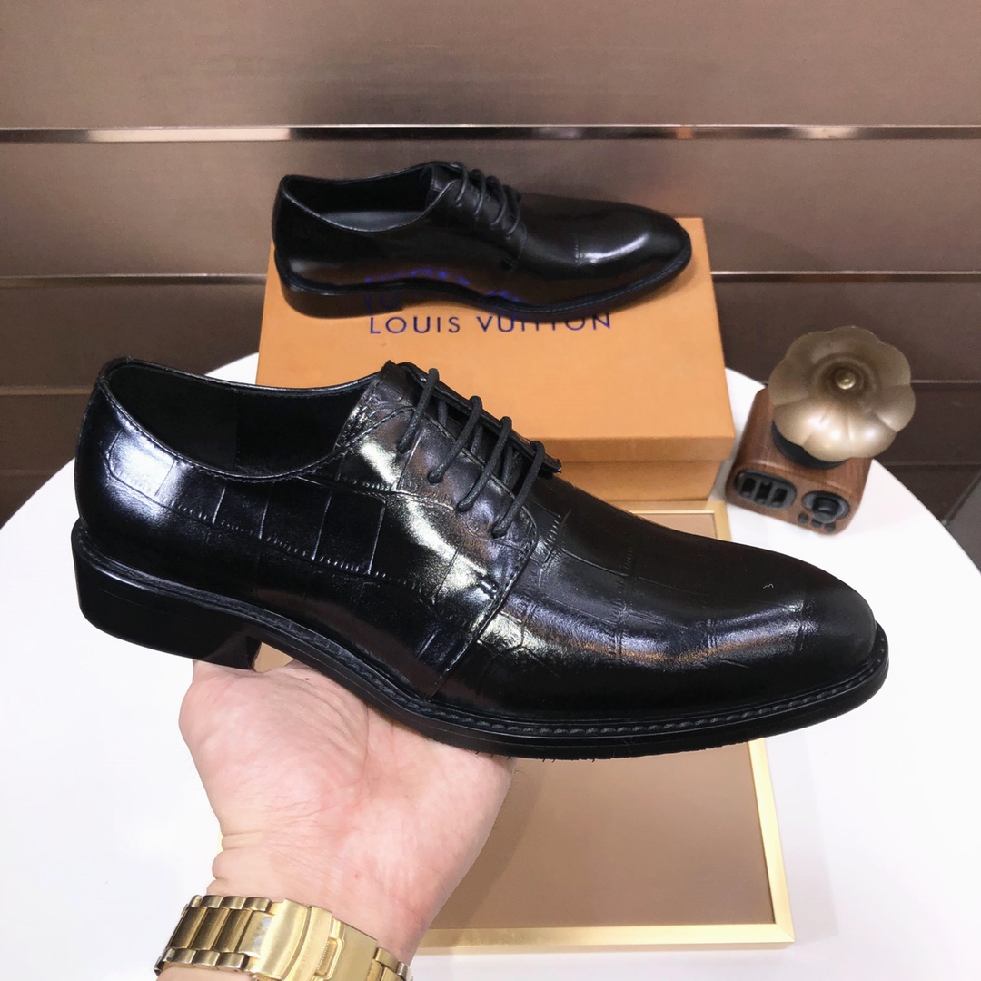 クラシカルなレースアップスタイルのビジネスシューズに、ワックスドカーフレザーでファッショナブルなひねりを効かせた「ヴォルテール・ライン ダービー」。左足にはモノグラム・フラワー モチーフを、右足にはLV イニシャルをレーザー加工で表現した、アシンメトリーなデザインが魅力です。洗練された雰囲気のレザーのシューレースと、耐久性に優れたレザーとラバーのアウトソールで仕上げました。ご不明な点がございましたら、クライアントサービスまでお気軽にお問合せください。専任のクライアントアドバイザーが、素材やサイズなどの製品詳細、モデル着用イメージや関連アイテムのご案内など、お客様のご要望に合わせたスタイリング・アドバイスをご提供いたします。また、サイズ違いなどによる返品・交換のご相談も承ります。詳細はこちら。